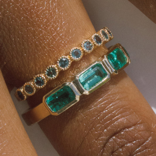 EMERALD CUT DIAMOND BEZEL CLOUD RING