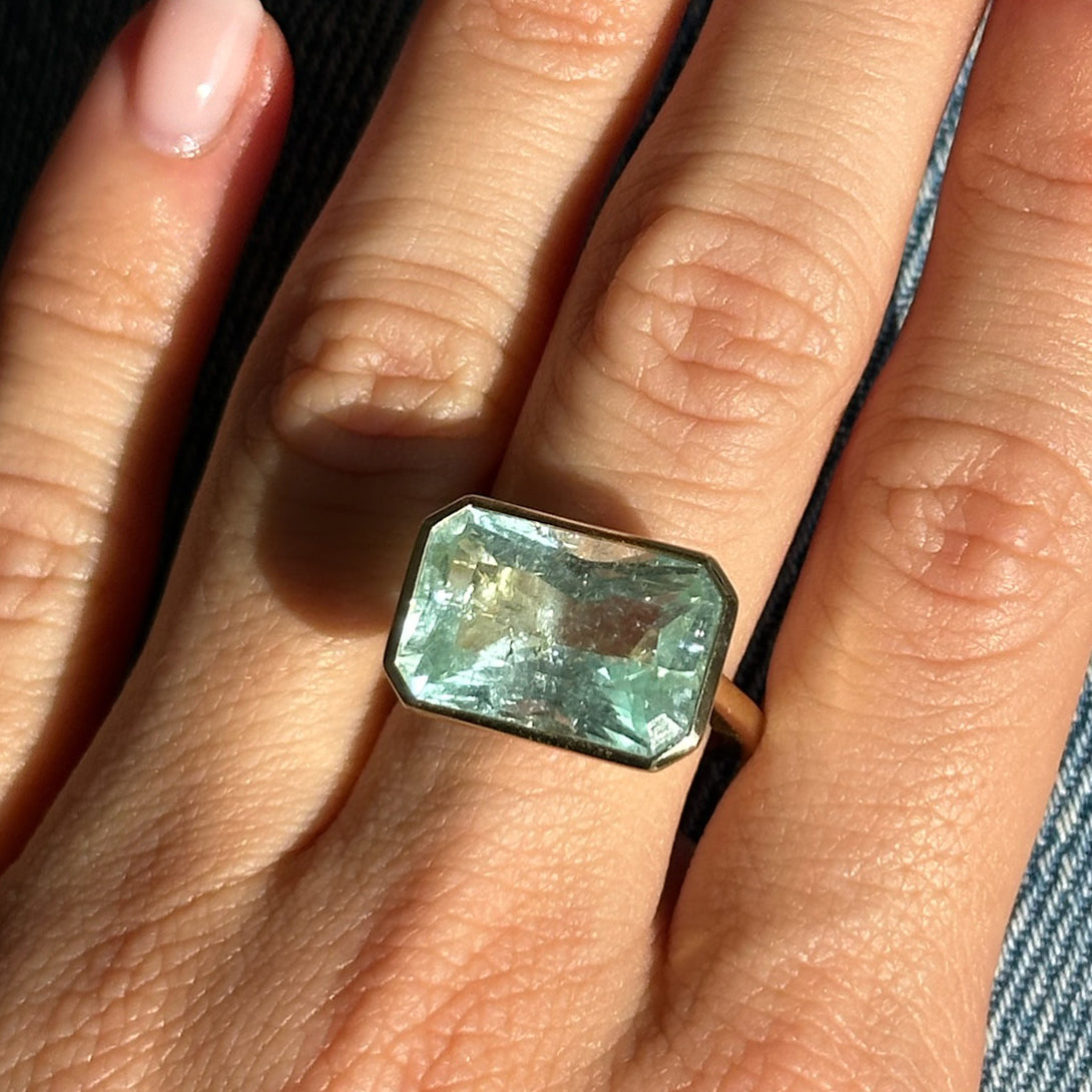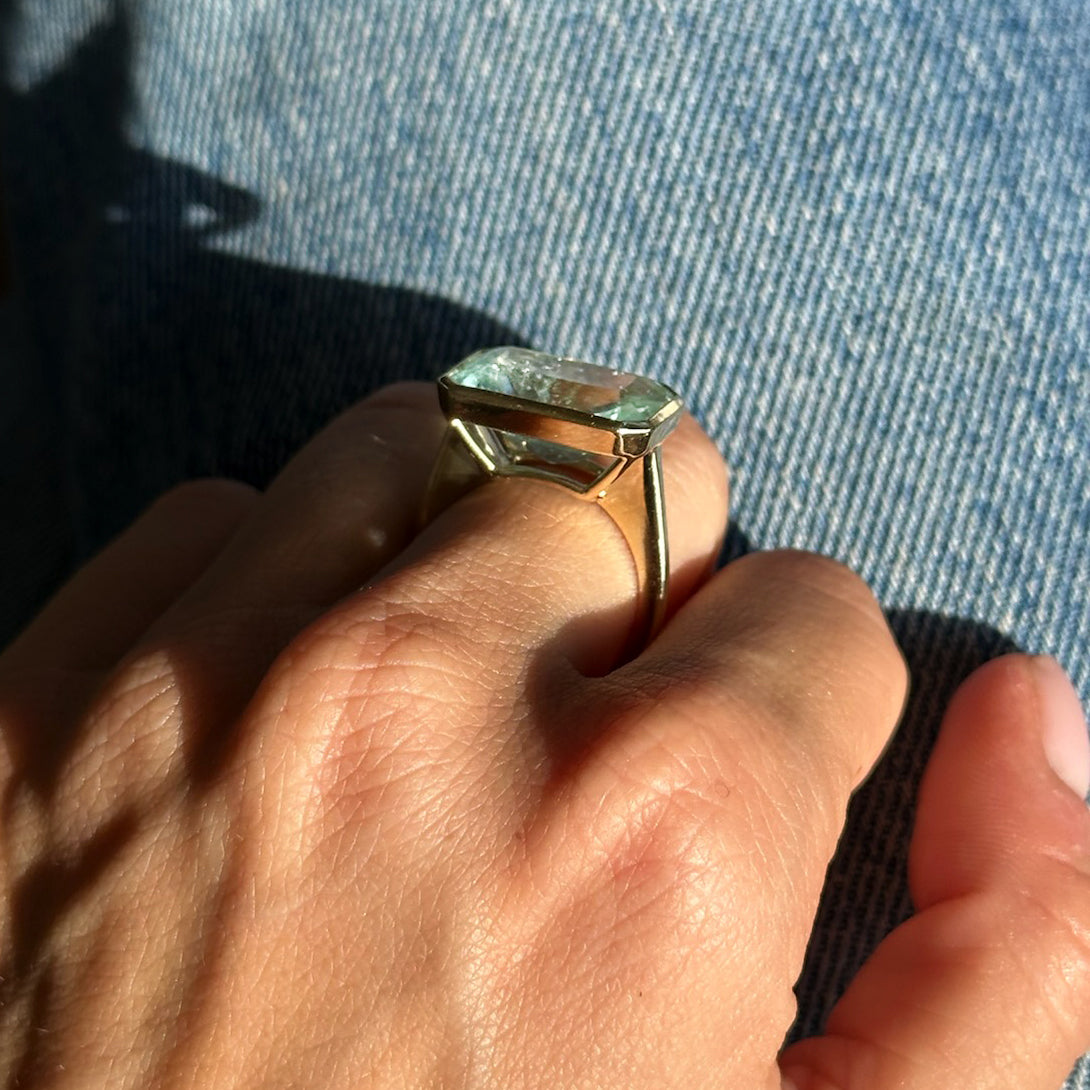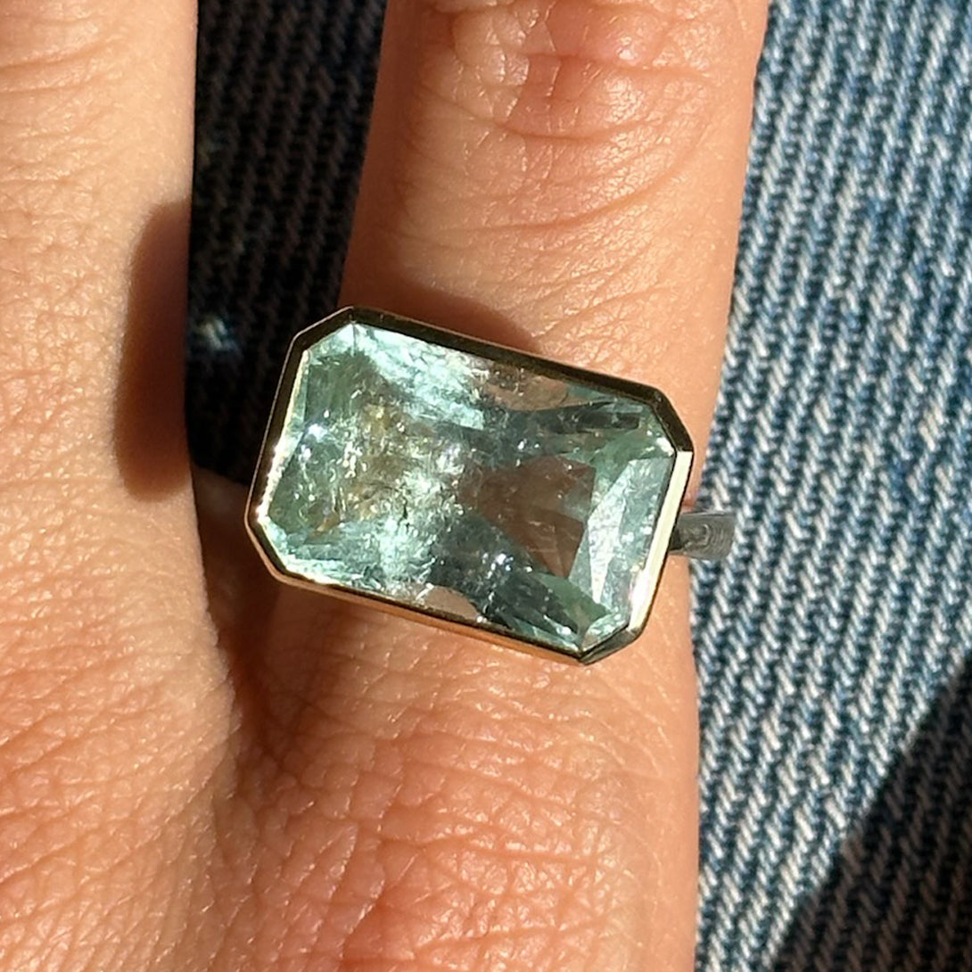 10.29CT RADIANT AQUAMARINE BEZEL RING