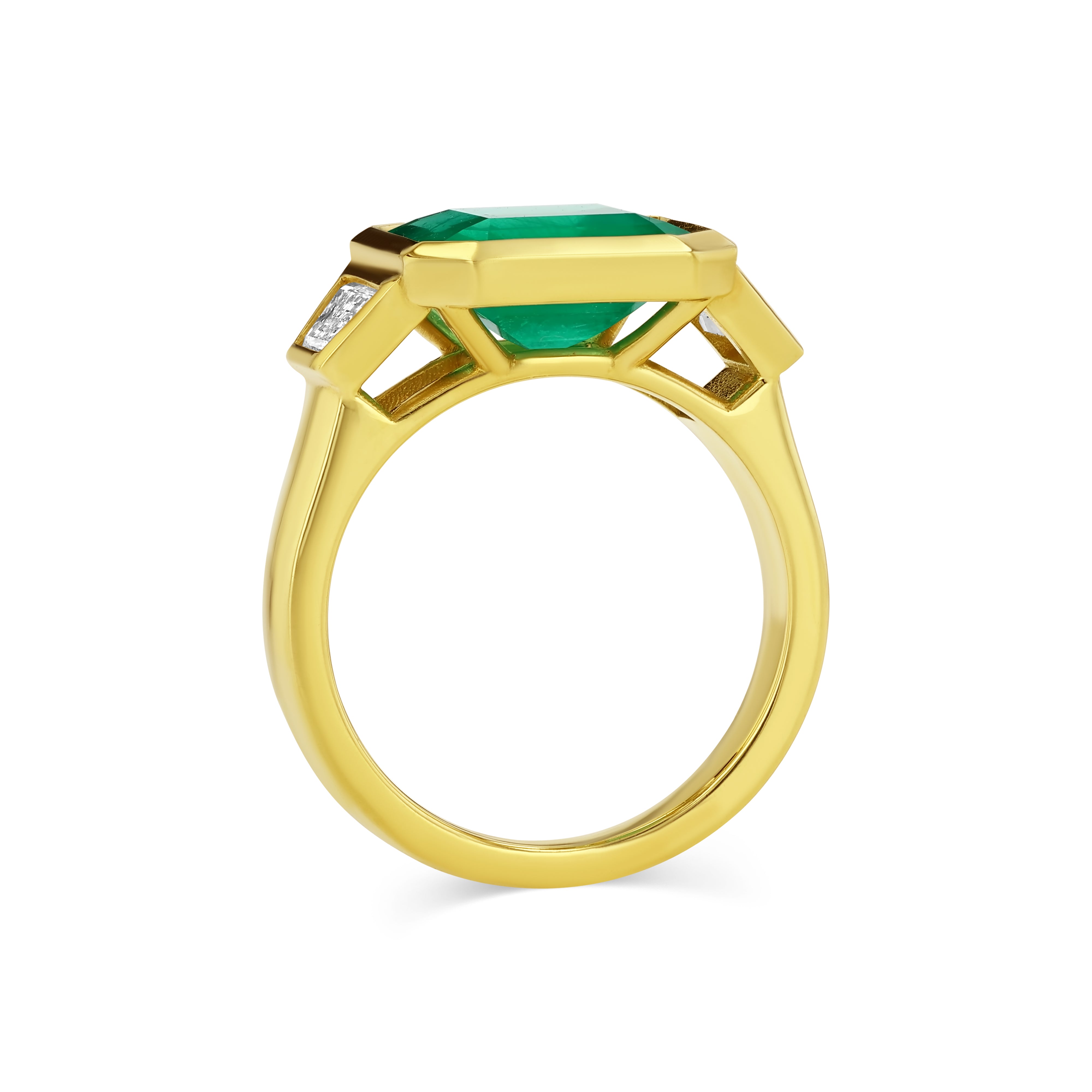 3.49ct Zambian Emerald and Diamond Bezel Ring