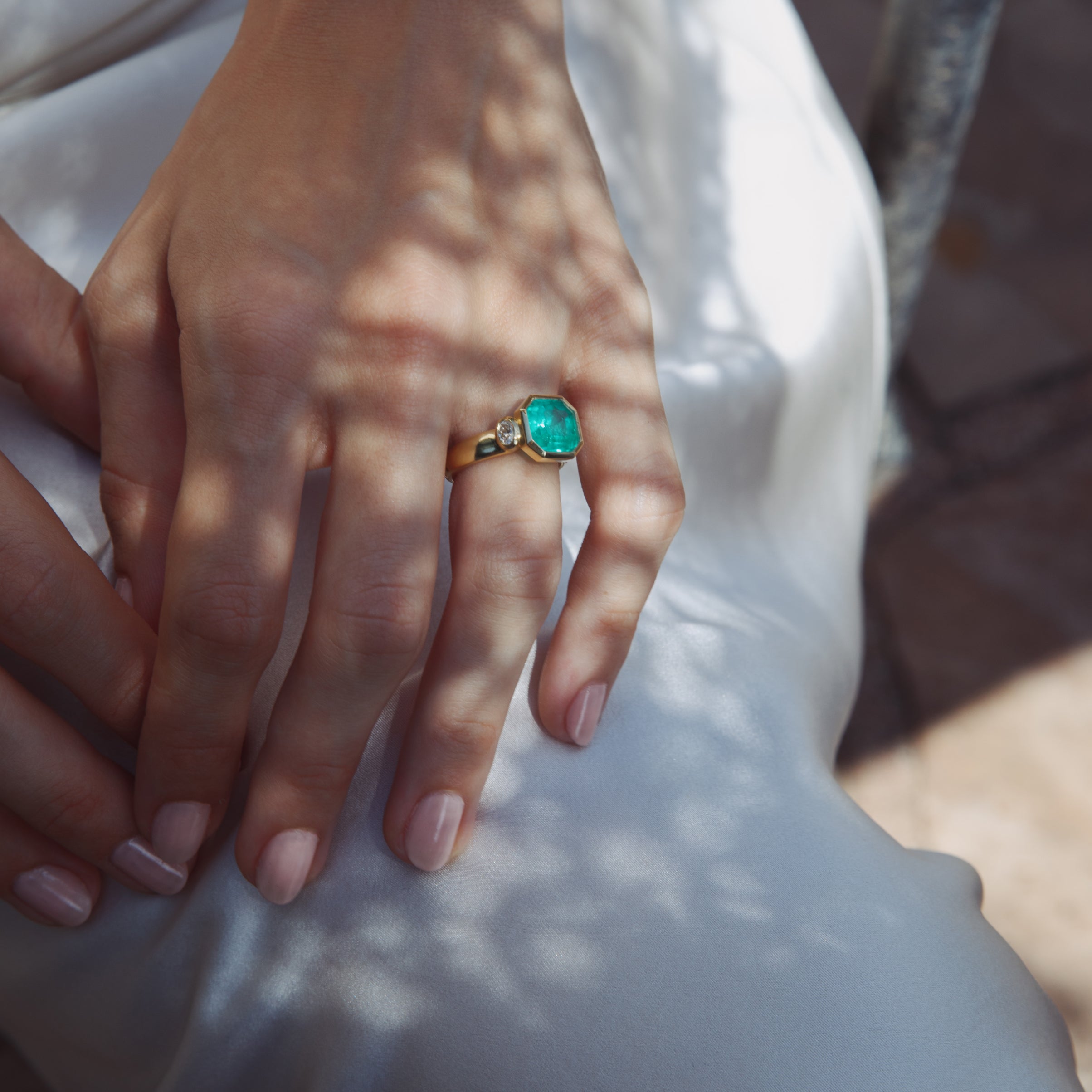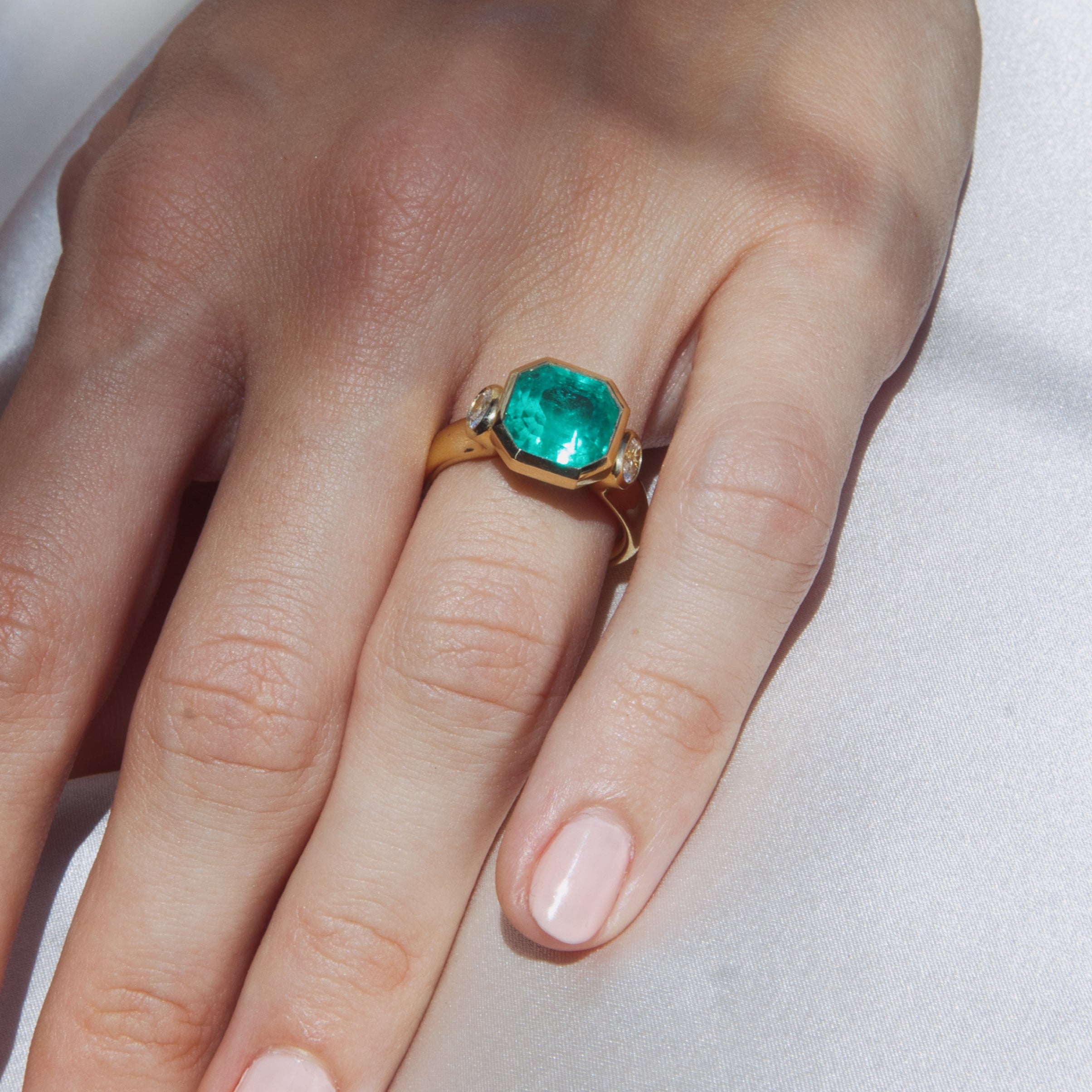 4.06ct Muzo Emerald and Diamond Floating Bezel Ring