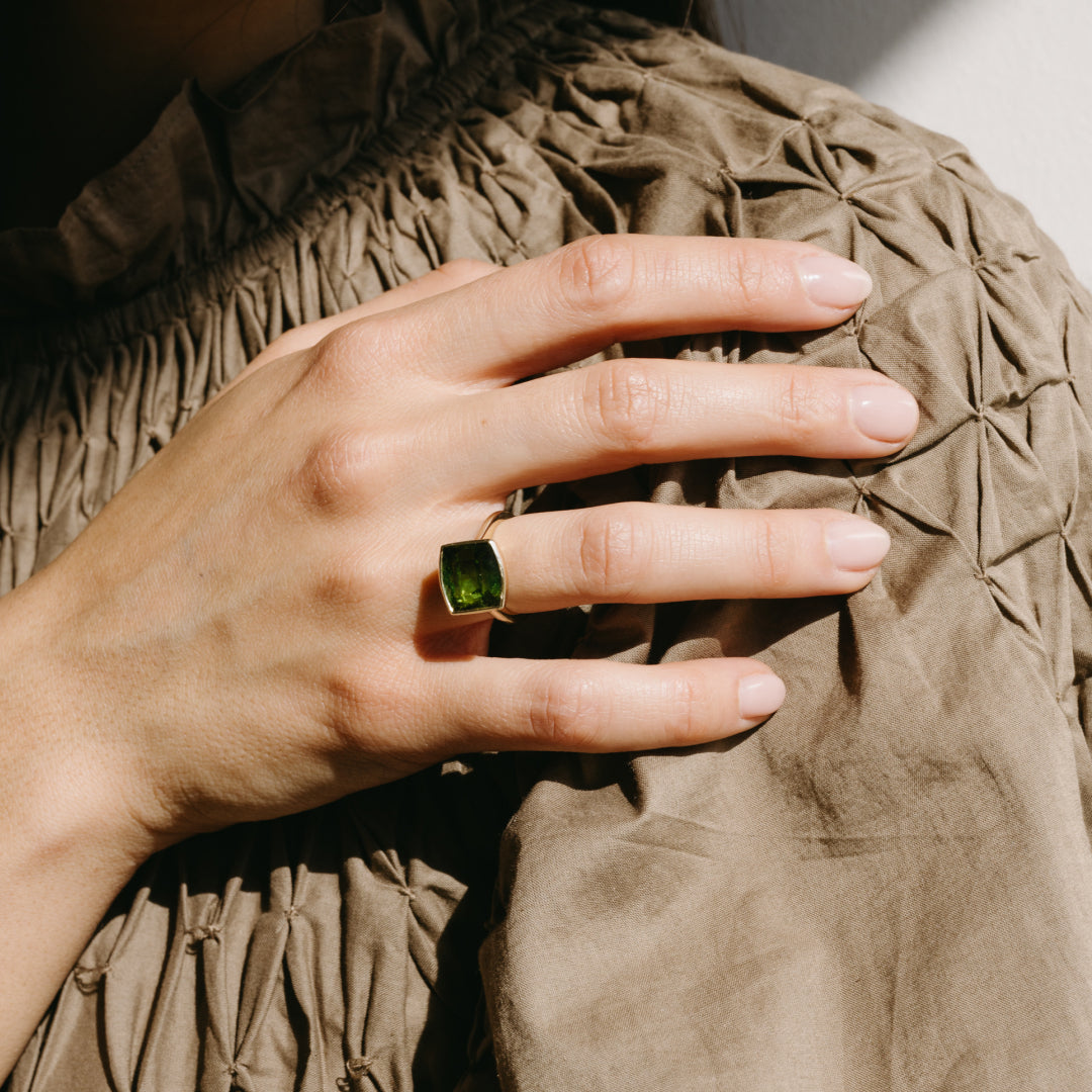 6.58ct Green Tourmaline Bezel Ring