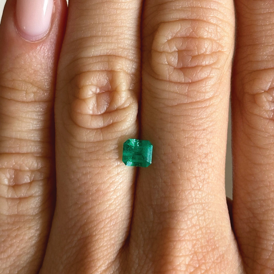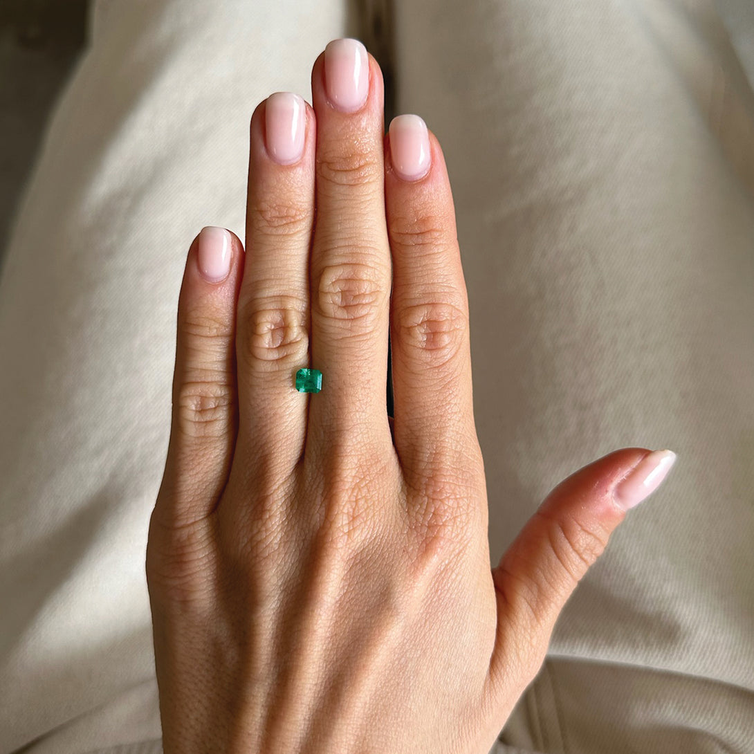 This lovely little emerald cut emerald shines from within with a deep green hue and is from the famed Muzo Mines in Colombia. We are so excited to make this remarkable stone into a future heirloom. Emerald is May's birthstone and symbolizes truth, love and hope. May this stone bring you all the love and hope you need.