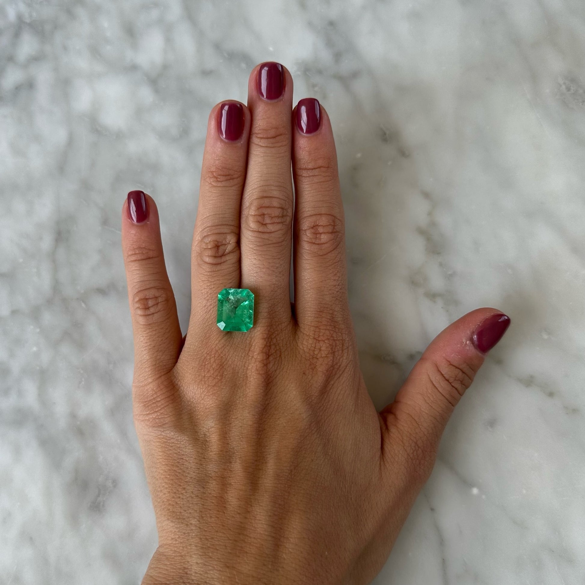 6.46ct Emerald, From Muzo Colombia, Minor Treatments (resin & cedar oil), Emerald Cut