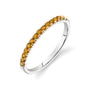 The Citrine Pavé Ring perfect is a perfect birthstone stacking band to celebrate November birthdays everyday. Citrine is one of the November birthstones. The word citrine comes from the French word for lemon, citron. Natural citrine color is caused by iron impurities in Quartz but is very rare and most citrine is the result of heating amethyst. Known as the “merchants stone” or “abundance stone” and citrine is believed to bring success and abundance.