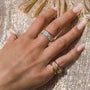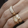 All stones are responsibly sourced, recycled or traceable mine-to-market when available. Currently we use a mix of 50% recycled diamonds on most pieces, but are moving towards using 100% post-consumer recycled diamonds. Diamond pieces that use 100% certified post-consumer diamonds are marked with the SCS logo.