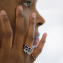 All stones are responsibly sourced, recycled or traceable mine-to-market when available. Currently we use a mix of 50% recycled diamonds on most pieces, but are moving towards using 100% post-consumer recycled diamonds. Diamond pieces that use 100% certified post-consumer diamonds are marked with the SCS logo.