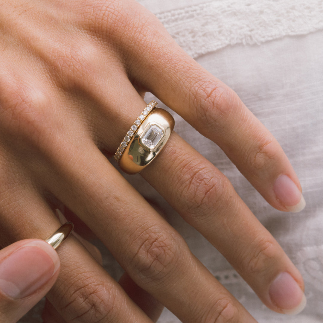 EMERALD CUT DIAMOND BEZEL CLOUD RING