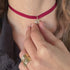 Lush burgundy velvet oval shaped box with velvet interior.