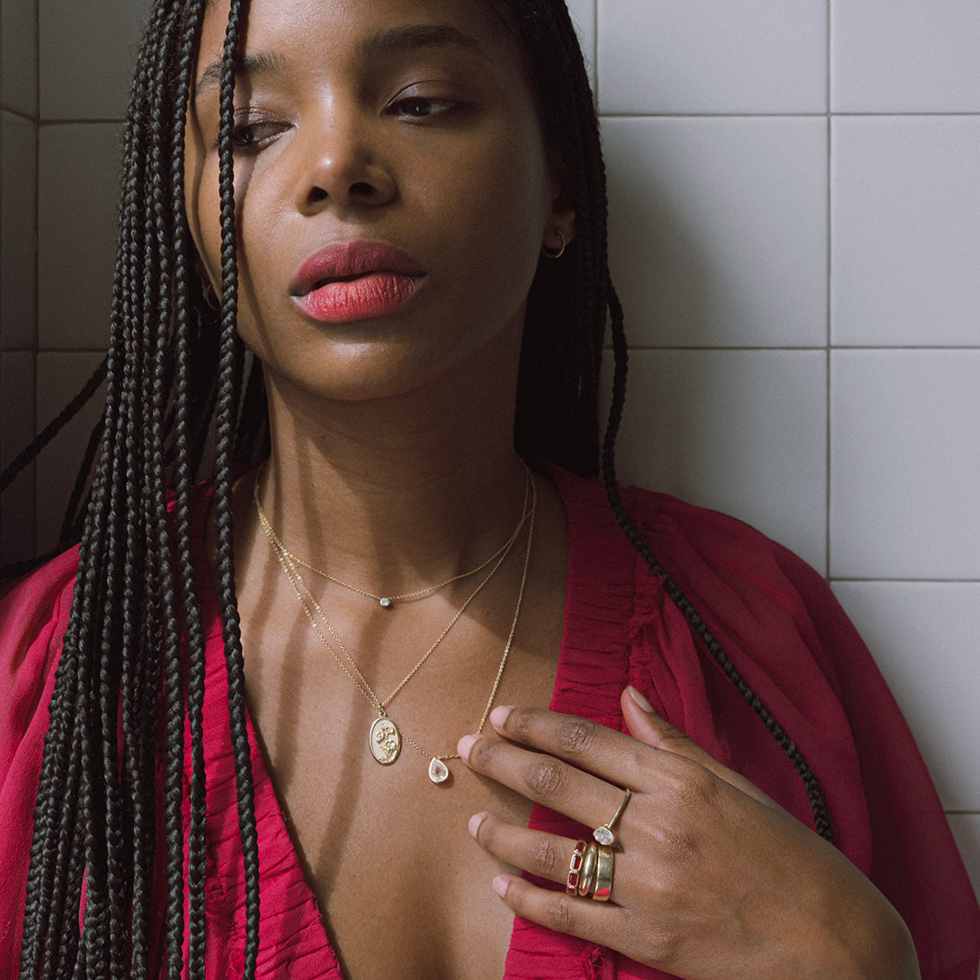 All of our 14k yellow gold and sterling silver is 100% post-consumer recycled metal. *Excluding chain and findings. Our 14k white and rose gold is 70% recycled.