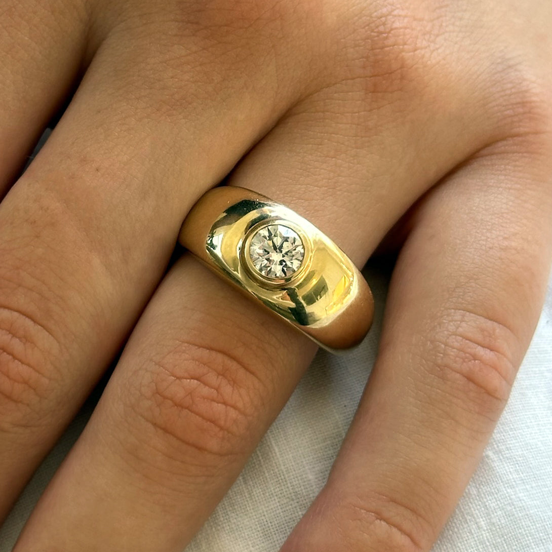 All stones are responsibly sourced, recycled or traceable mine-to-market when available. Currently we use a mix of 50% recycled diamonds on most pieces, but are moving towards using 100% post-consumer recycled diamonds. Diamond pieces that use 100% certified post-consumer diamonds are marked with the SCS logo.